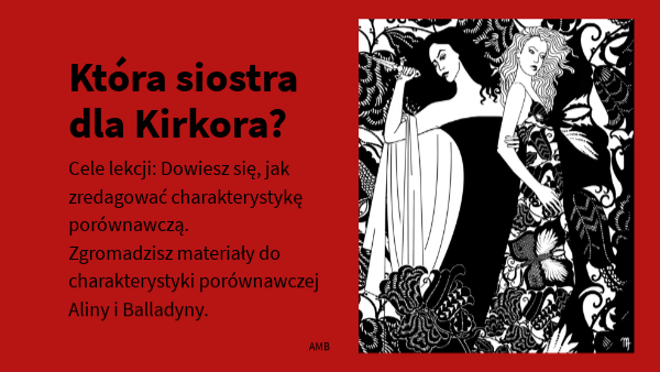 Cele lekcji: Dowiesz się, jak zredagować charakterystykę porównawczą. Zgromadzisz materiały do charakterystyki porównawczej Aliny i Balladyny.