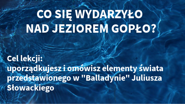 Cel lekcji: uporządkujesz i omówisz elementy świata przedstawionego w "Balladynie" Juliusza Słowackiego