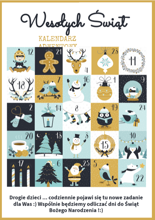 Drogie dzieci ... codziennie pojawi się tu nowe zadanie dla Was :) Wspólnie będziemy odliczać dni do Świąt Bożego Narodzenia !:)