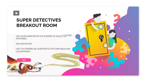 USE YOUR SUPER DETECTIVE POWERS TO SOLVE THE MYSTERIES. SALA DE ESCAPE USÁ TUS PODERES DE SUPER DETECTIVE PARA RESOLVER LOS MISTERIOS.