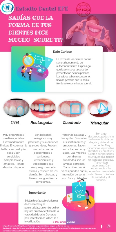Existen teorías sobre la forma de los dientes y la personalidad, sin embargo No hay una prueba científica de la veracidad de esto. Con este post incentivamos la lectura e investigación.
