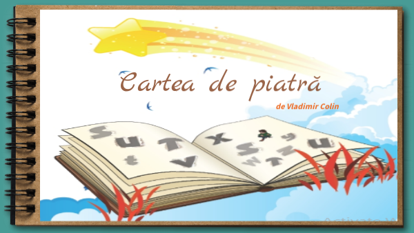 Era aceea Cartea Pământului și filele-i uriașe cât muntele erau groase de-un cot. Și, iacă, în tăcerea ce se așternu apoi, scoarțele de piatră se ridicară anevoie, descoperind întâia filă a cărții. Fără a sta pe gânduri, băiatul se repezi și sări pe fila aceea de piatră, dar nu izbuti să citească nimic. Fila era uriașă, slovele - mai mari decât el.
