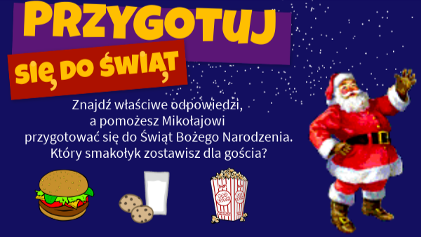 Znajdź właściwe odpowiedzi, a pomożesz Mikołajowi przygotować się do Świąt Bożego Narodzenia. Który smakołyk zostawisz dla gościa?