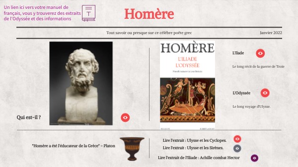 Un lien ici vers votre manuel de français, vous y trouverez des extraits de l'Odyssée et des informations