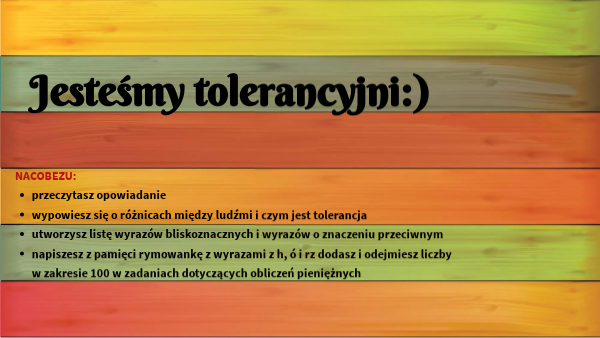 - wypowiesz się o różnicach między ludźmi i czym jest tolerancja