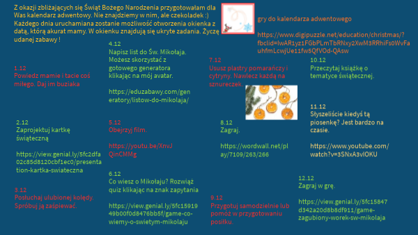 projekt zadań kalendarz adwentowy