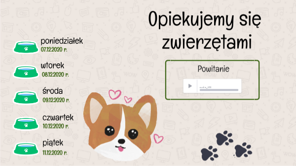 Dobra rada: Zwierzęta domowe są od nas zależne! Jeśli mamy w domu żywe stworzenie to musimy o nie dbać, karmić, systematycznie wyprowadzać na spacery. Pamiętajmy o tym, że nie możemy zmuszać zwierząt do męczących zabaw, tresury.