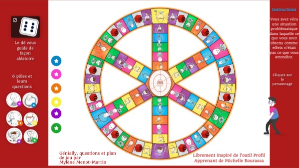 Déplacez votre étoile sur le plan de jeu à partir du centre vers la périphérie en fonction du tirage du dé. Laissez-vous interpeller par la question.