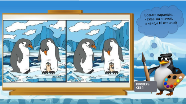 Возьми карандаш, нажав на значок, и найди 10 отличий