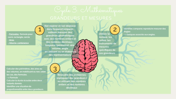 (Se) repérer et (se) déplacer dans l’espaceComparer, estimer, mesurer des grandeurs géométriques avec des nombres entiers et des nombres décimaux : longueur (périmètre), aire, volume, angle en utilisant ou en élaborant des représentations