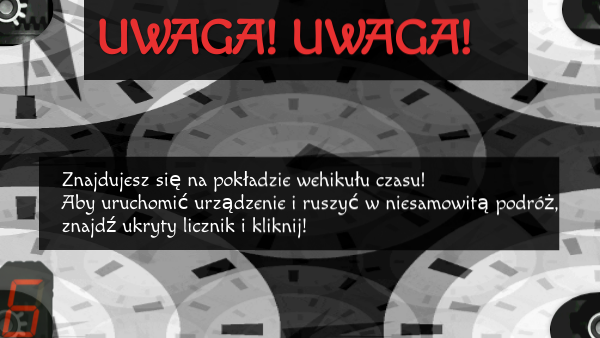 Znajdujesz się na pokładzie wehikułu czasu! Aby uruchomić urządzenie i ruszyć w niesamowitą podróż, znajdź ukryty licznik i kliknij!