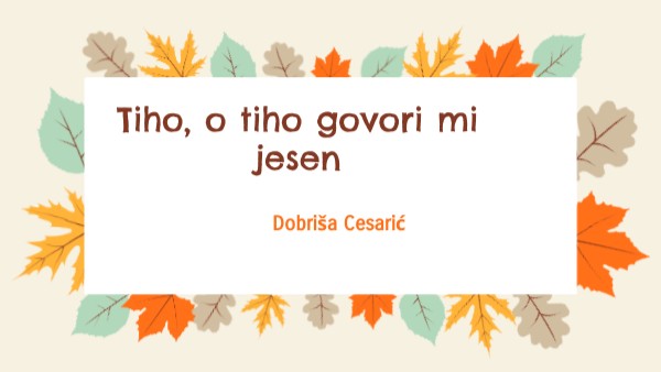 Dobriša Cesarić, Tiho, o tiho govori mi jesen