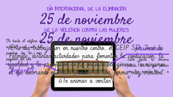 En la siguiente presentación se exponen las actividades realizadas por el alumnado del CEIP San José de Palmente para conmemorar el Día internacional de la eliminación de la violencia contra las mujeres.