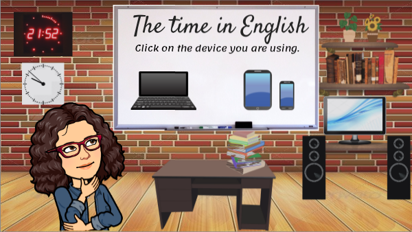 In order to know how to say the time, you MUST know how to say the numbers from 1 to 59. Watch TV to revise. Click on the laptop, the speaker, the books on the desk and on the shelves to practise numbers. There are two ways to say the time, click on the clocks to learn how to say the time in English.