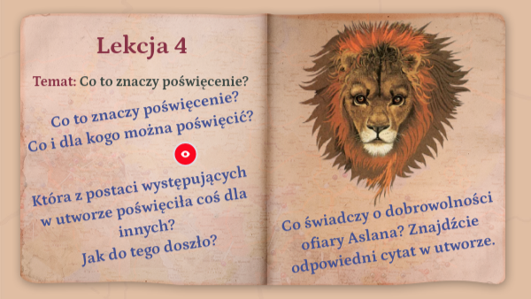 Co świadczy o dobrowolności ofiary Aslana? Znajdźcie odpowiedni cytat w utworze.