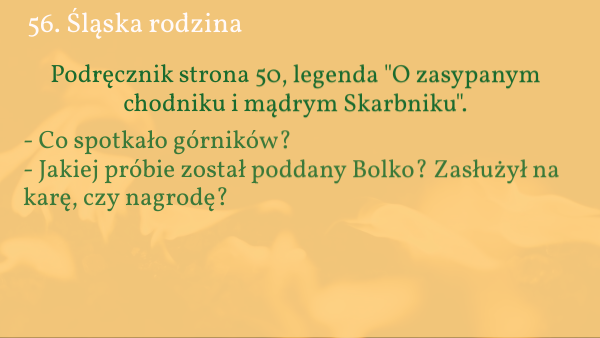 Podręcznik strona 50, legenda "O zasypanym chodniku i mądrym Skarbniku".