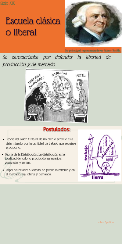 - Papel del Estado: El estado no puede intervenir y en el mercado hay oferta y demanda.