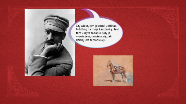 Czy wiesz, kim jestem? Jeśli tak, to kliknij na moją kasztankę. Jest tam ukryte zadanie. Gdy je rozwiążesz, dowiesz się, jaki dzisiaj jest temat lekcji.