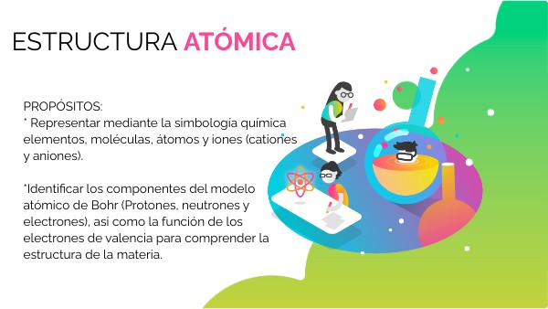 PROPÓSITOS:* Representar mediante la simbología química elementos, moléculas, átomos y iones (cationes y aniones). *Identificar los componentes del modelo atómico de Bohr (Protones, neutrones y electrones), asi como la función de los electrones de valencia para comprender la estructura de la materia.