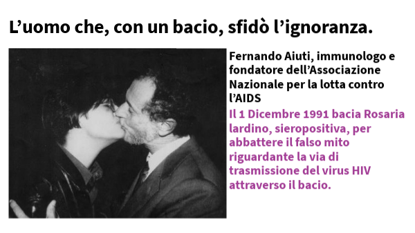 Il 1 Dicembre 1991 bacia Rosaria lardino, sieropositiva, per abbattere il falso mito riguardante la via di trasmissione del virus HIV attraverso il bacio.