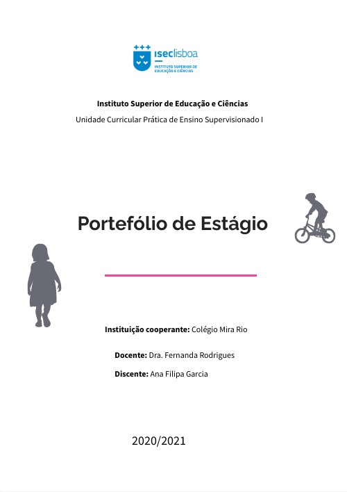 O presente relatório de Estágio surgiu no âmbito da Unidade Curricular de Prática de Ensino supervisionado I, integrante no plano de Estudos do 1º ano do Mestrado em Educação Pré-Escolar e 1º Ciclo do Ensino Básico no Instituto Superior de Educação e Ciências. Este estágio começou no dia 6 de Novembro de 2020 e terminou no dia XXXX na sala dos 4 anos com um grupo constituído por 26 crianças no Colégio Mira Rio localizado em Telheiras. A educação Pré-Escolar tem vindo a tornar-se cada vez mais importante no contexto educacional e, ao observarmos a Lei-Quadro para a Educação Pré-Escolar podemos perceber que a educação Pré-Escolar está definida como Neste processo de educação, o educador tem de ter em conta as características de cada criança com saberes e competências diferentes, estimulando sempre a sua evolução no grupo. O portfólio é importante uma vez que é um instrumento que regula a prática pedagógica e, simultaneamente, um instrumento de aprendizagem e de avaliação. Segundo Hernández (1998, p.100 apud Rodrigues, 2009, p.1) o portfolio é um "continente de diferentes classes de documentos (notas pessoais, experiências de aula, trabalhos pontuais, controle de aprendizagem, conexões com outros temas fora da escola, representações visuais, etc.) que proporciona evidências do conhecimento que foi construído, das estratégias utilizadas e da disposição de quem o elabora em continuar aprendendo." Com a elaboração do portfolio, temos a preocupação, como estagiárias, de observar de forma mais atenta toda a prática realizada uma vez que temos que ter todo o processo no portfólio, o que nos permite planificar, caraterizar, refletir e avaliar todo o nosso percurso. Ficamos também com documentos e planificações que nos irão ser úteis na nossa profissão futura enquanto educadoras de infância. A criação de um portfólio no estágio permite ainda ao docente verificar todo o processo de aprendizagem que vai sendo realizado e, desta forma, dar-nos uma orientação do que foi feito e o que poderá ser melhorado na nossa prática educativa. Bernardes & Miranda (2003 apud Rodrigues, 2009, p.18) defendem ainda que "no decorrer da construção deste instrumento, o estagiário toma consciência dos esforços que desenvolve e os objectivos que pretende atingir bem como, estabelece as estratégias a adoptar" e "(...) promove a colaboração entre o supervisor e o estagiário na planificação das actividades de aprendizagem, podendo conduzir a uma introdução inovadora nos processos de ensino aprendizagem" (Cole, 2000 apud Rodrigues, 2009, p.18).