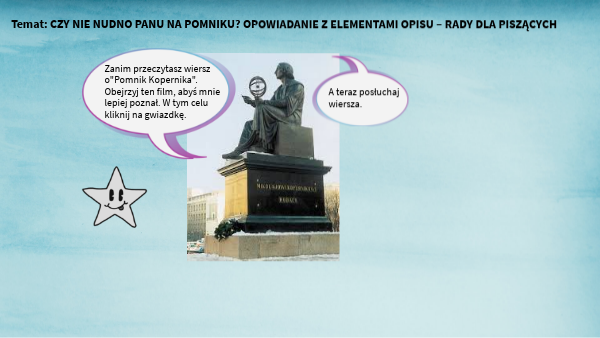 Temat: CZY NIE NUDNO PANU NA POMNIKU? OPOWIADANIE Z ELEMENTAMI OPISU – RADY DLA PISZĄCYCH