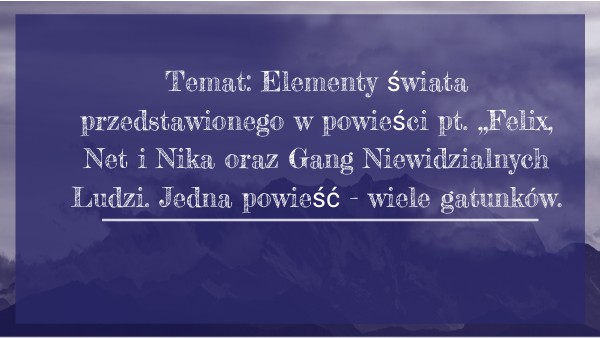 Temat: Elementy świata przedstawionego w powieści pt. ,,Felix, Net i Nika oraz Gang Niewidzialnych Ludzi. Jedna powieść - wiele gatunków.