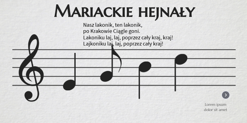 C5 G4 E4 C4 F4 D4 H 3 G3 Nasz laj-ko-nik, ten laj- ko-nik, C5 G4 E4 C4 G4 D4 H3 G3 po Kra-ko-wie ciąg-le go-ni E4 G4 E4 G4 A4 A4 H4 C5 A4 A4 G4G 4 Laj-ko-ni-ku laj, laj, po- przez ca-ły kraj, kraj! E4 G4 E4 G4 A4 A4 H4 H4 A4 H4 C5 Laj-ko-ni-ku laj, laj, poprzez ca-ły kraj!