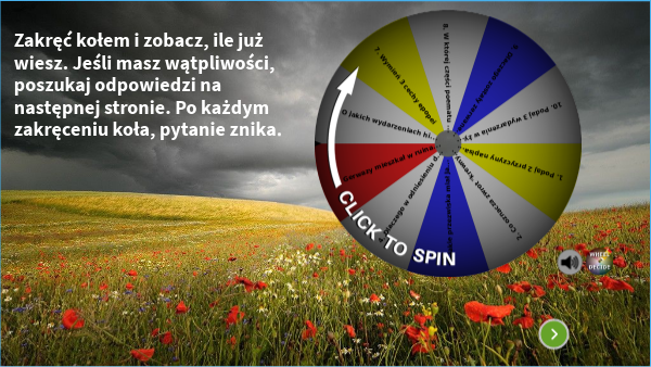Zakręć kołem i zobacz, ile już wiesz. Jeśli masz wątpliwości, poszukaj odpowiedzi na następnej stronie. Po każdym zakręceniu koła, pytanie znika.