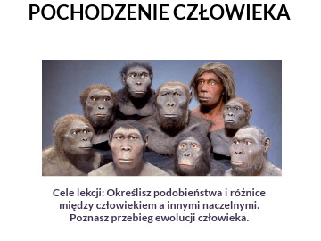 Cele lekcji: Określisz podobieństwa i różnice między człowiekiem a innymi naczelnymi. Poznasz przebieg ewolucji człowieka.