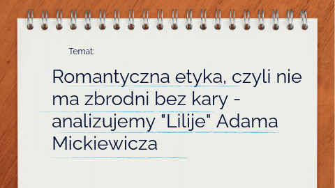 Romantyczna etyka, czyli nie ma zbrodni bez kary - analizujemy "Lilije" Adama Mickiewicza