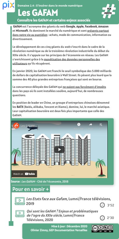 Qui sont les GAFAM ? Enjeux et problématiques de l’ogre du XXIe siècle, Lumni/France Télévisions, 2020