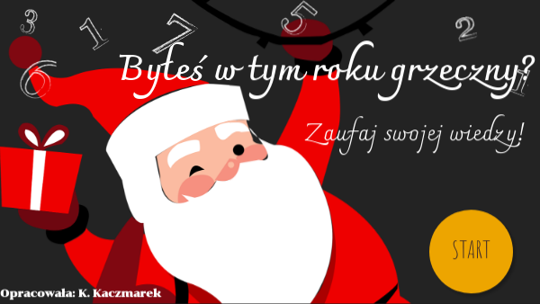 Wczoraj były Mikołajki...Mikołaj pamiętał też o Was i zostawił coś u Waszej matematyczki!Aby odebrać upominek musisz zapisywać w zeszycie wszystkie obliczenia oraz na zakończenie wpisać kod, który otwiera drzwi. Żeby go zdobyć musisz popisać się wiedzą matematyczną...