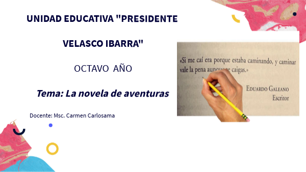 UNIDAD EDUCATIVA "PRESIDENTE VELASCO IBARRA" OCTAVO AÑO Tema: La novela de aventuras