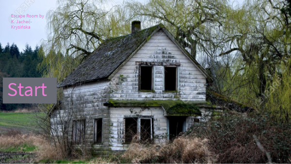 You went for a walk to the forest. Unfortunately, you are lost. Your mobile phone stopped working. It's getting cold and dark. You want to find some help. You have found a house. You are entering the old building. Suddenly the door is closing. You have noticed that you need a 4 digit code to escape the house. Poszedłeś na spacer do lasu. Niestety się zgubiłeś. Twoja komórka przestała dziąłąć. Robi się zimno i ściemnia się. Chcesz znaleźć pomoc. Znalazłeś dom, wchodzisz do niego i nagle drzwi zamykają się za Tobą. Zuważyłeś, że potrzebujesz 4 cyfrowy kod aby wydostać się z domu.