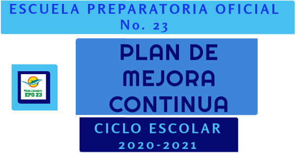 El presente documento es producto de la planeación estratégica concebida en la Escuela Preparatoria Oficial No. 23 para el Ciclo Escolar 2020-2021, el cual nos sitúa en un escenario urbano donde un gran porcentaje de los estudiantes proviene de familias no tradicionales, que generalmente habitan en lugares reducidos y donde la mayoría de ellos desempeñan trabajos ocasionales para ayudarse en sus estudios, por lo que el nivel económico es medio y medio bajo, aunado a esto se presenta un panorama completamente diferente a la enseñanza presencial y presenta múltiples desafíos para todos los actores de la comunidad y es fruto de una reflexión colaborativa cuyo principal objetivo es mejorar la calidad del proceso educativo para contribuir a la formación integral de los alumnos, desarrollando gradual y constantemente las competencias genéricas, disciplinares básicas y extendidas a la par del impulso de una cultura de responsabilidad social y civil basada en el ejercicio de valores morales a través del diseño, aplicación y evaluación constante de estrategias diversas a partir del diagnóstico de las características de la población estudiantil, sus intereses, inquietudes, necesidades de formación y diversidad de contextos sociales y familiares; teniendo como referencia el extraordinario reto de la transformación de los modelos de enseñanza a través de la virtualidad y el logro del aprendizaje significativo a través de la enseñanza no presencial.