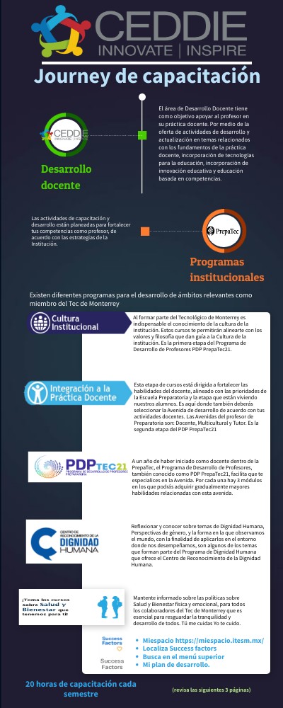 A un año de haber iniciado como docente dentro de la PrepaTec, el Programa de Desarrollo de Profesores, también conocido como PDP PrepaTec21, facilita que te especialices en la Avenida. Por cada una hay 3 módulos en los que podrás adquirir gradualmente mayores habilidades relacionadas con esta avenida.