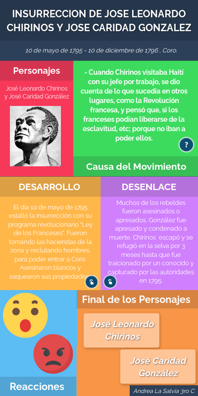- Cuando Chirinos visitaba Haití con su jefe por trabajo, se dio cuenta de lo que sucedía en otros lugares, como la Revolución francesa, y pensó que, si los franceses podían liberarse de la esclavitud, etc; porque no iban a poder ellos.
