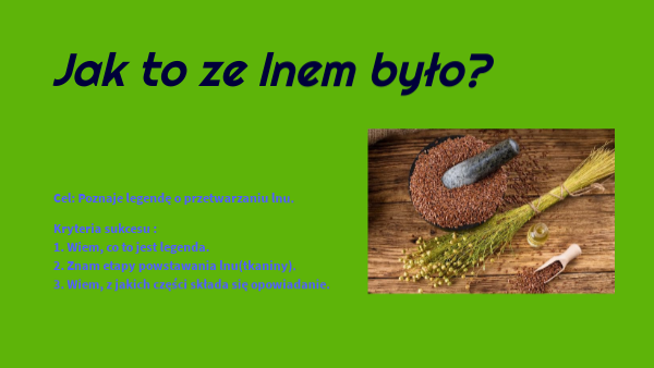 Cel: Poznaje legendę o przetwarzaniu lnu.