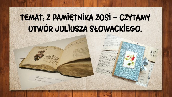 Temat: Z pamiętnika zosi - czytamy utwór Juliusza słowackiego.