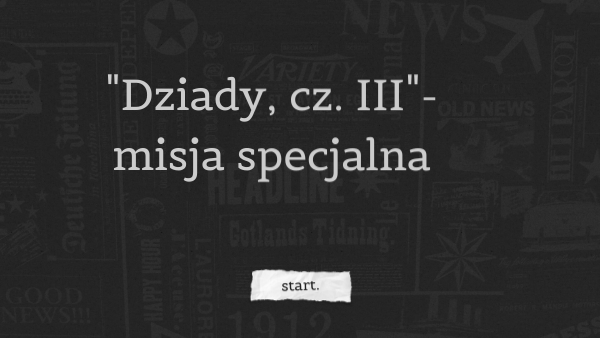 Witaj Przybyszu! Zapraszamy Cię na tajne spotkanie, które odbędzie się dziś - punktualnie o północy w celi Konrada. Aby wejść, musisz znać hasło - imię bohatera, który jako pierwszy zabiera głos w scenie I aktu I "Dziadów, cz. III"