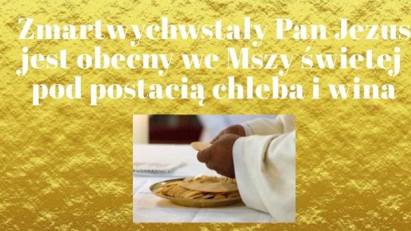 Zmartwychwstały Pan Jezus jest obecny we Mszy świetej pod postacią chleba i wina