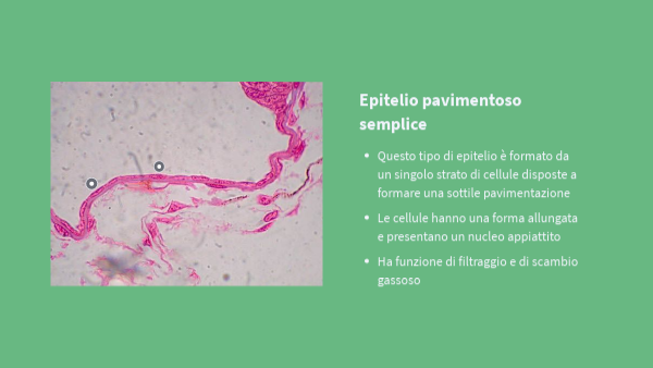 - Questo tipo di epitelio è formato da un singolo strato di cellule disposte a formare una sottile pavimentazione