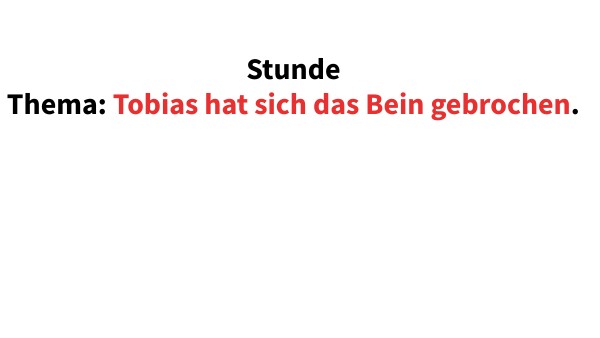 Stunde Thema: Tobias hat sich das Bein gebrochen.