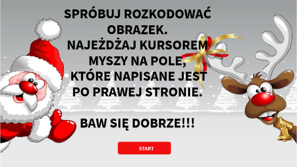 SPRÓBUJ ROZKODOWAĆ OBRAZEK. NAJEŻDŻAJ KURSOREM MYSZY NA POLE, KTÓRE NAPISANE JEST PO PRAWEJ STRONIE. BAW SIĘ DOBRZE!!!
