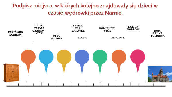 Podpisz miejsca, w których kolejno znajdowały się dzieci w czasie wędrówki przez Narnię.
