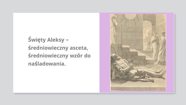 Święty Aleksy – średniowieczny asceta, średniowieczny wzór do naśladowania.