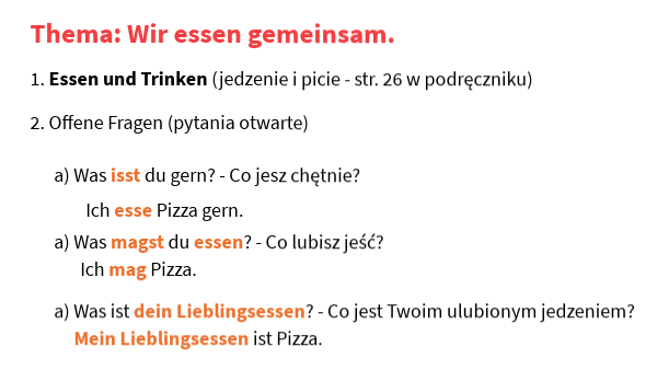 a) Was ist dein Lieblingsessen? - Co jest Twoim ulubionym jedzeniem?