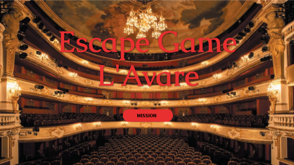 Sauvez la représentation de l'Avare ! Molière a besoin de votre aide, le texte de la pièce est bloqué dans un coffre dont Molière a perdu le code. Répondez aux énigmes disséminées dans le théatre pour retrouver ce code ! Prenez ce plan pour vous aider :