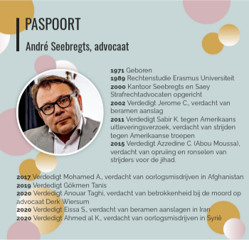 1971 Geboren 1989 Rechtenstudie Erasmus Universiteit 2000 Kantoor Seebregts en Saey Strafrechtadvocaten opgericht 2002 Verdedigt Jerome C., verdacht van beramen aanslag 2011 Verdedigt Sabir K. tegen Amerikaans uitleveringsverzoek, verdacht van strijden tegen Amerikaanse troepen 2015 Verdedigt Azzedine C. (Abou Moussa), verdacht van opruiing en ronselen van strijders voor de jihad.